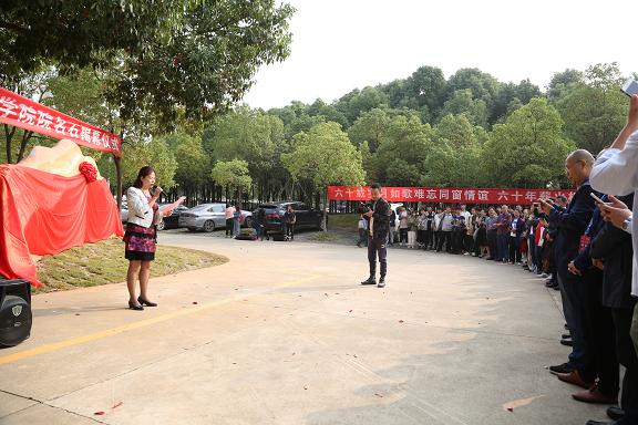 (副校长姜明华与校友代表李杰雄共同为院名石揭幕)