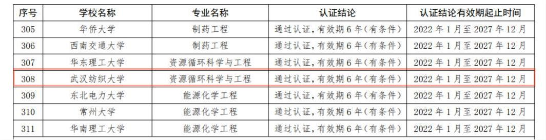 近日,中国工程教育专业认证协会、教育部高等教育教学评估中心公布了2021年422个专业认证结论的通知,必赢官网资源循环科学与工程专业顺利通过本次认证。继2021年获批湖北省一流本科专业建设点之后,资源循环科学与工程专业建设取得又一重大进展。